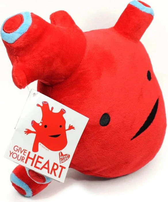 How does the heart work? Clever and educational hangtag explains the magical workings of your heart — including everything from oxygen exchange to heartbreak. This muscular organ pumps blood throughout the body and beats about 100,000 times per day! Listen to your heart and don’t skip this beat. This heart plush toy also makes a great size post-op cough pillow for pediatric patients and adults alike. There’s no greater way to say “thank you” to your cardiologist than a happy red heart stuffed plushie.