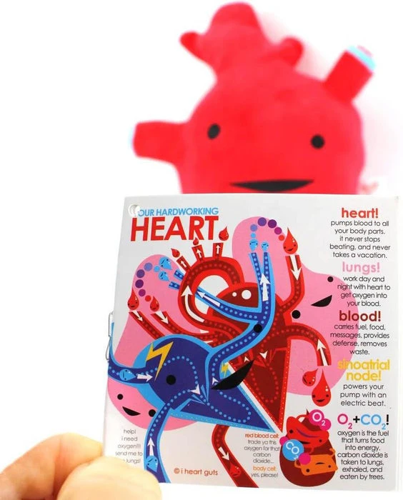 We’ve got more heart for you to love. This great big heart is a whopping 10″ x 8″ x 4″ super-soft high quality embroidered plush, perfect for hugging — or beating. This muscular organ pumps blood throughout the body and beats about 100,000 times per day! Comes with an educational booklet hangtag describing the magical workings of your heart.