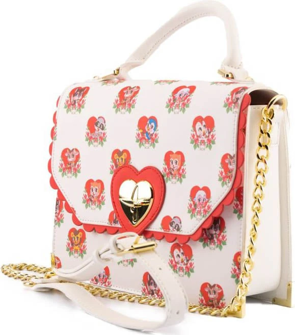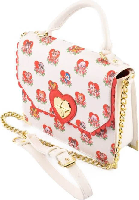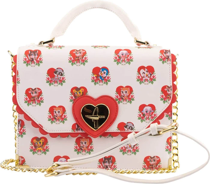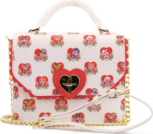Don’t let their sweet, innocent faces fool you! The all-over print of this bag features an array of cute, loveable critters – with a villainous twist! Each have their own weapon on hand while maintaining their harmless, big-eyed and rosey-cheeked illusion. The hearts they’re hanging out in adds to their facade, each one adorned with roses for that extra sweet appearance.