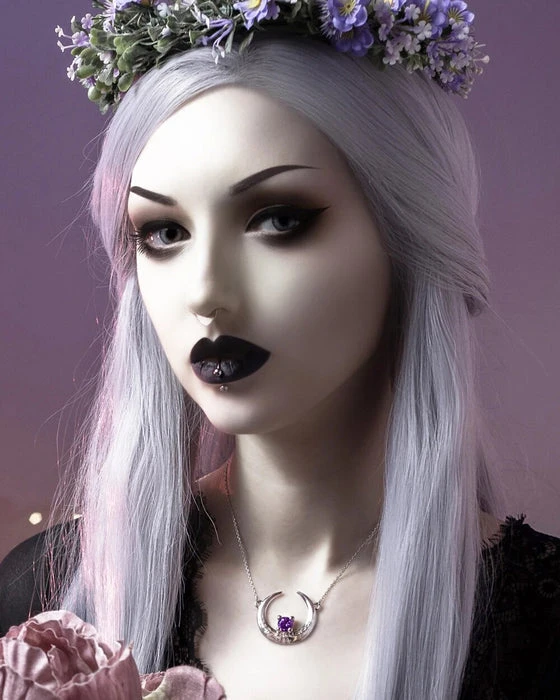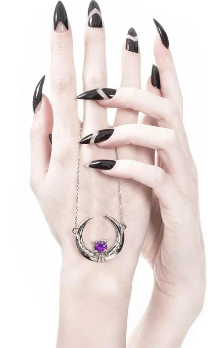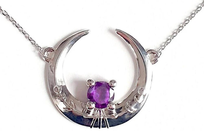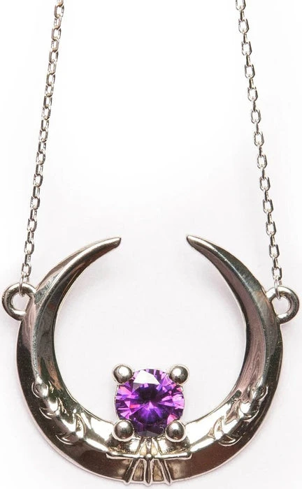 A stunning Sterling Silver Moon Necklace with the Sun and Moon hiding from each other, adorned with an Amethyst Cubic Zirconia. Mirror Polished Silver and extra magical!