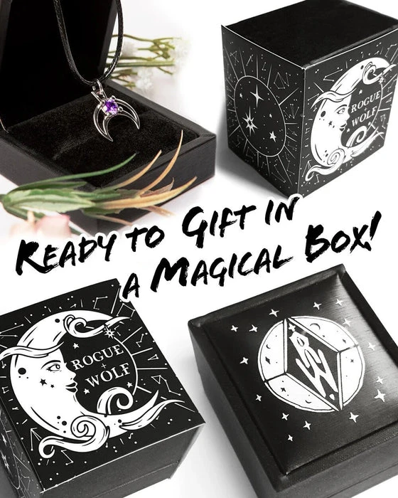 A Magical Moon Choker with a hollow crescent to let you carry the night’s light, adorned with an Amethyst Cubic Zirconia.