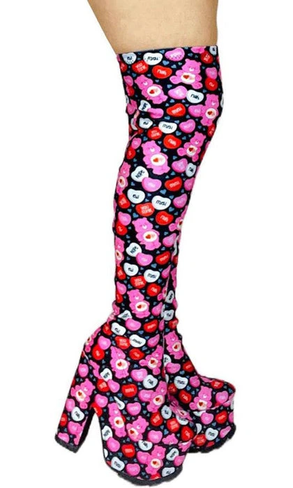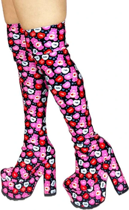Feel the love with the Labyrinth Care Bear Valentine Black and Pink Boots! These adorable statement boots are the ultimate must haves for your wardrobe!